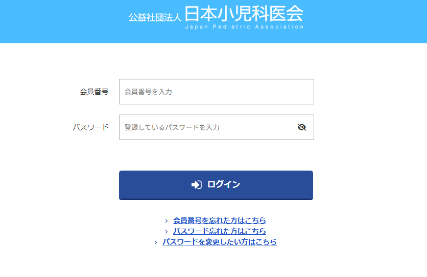 ログインには会員番号とパスワードが必要になります。パスワードの初期値(仮パスワード)は小文字半角で「jpa(ジェイ・ピー・エー)」に続いて先生のお誕生日を4桁となるように入力してください。(例)お誕生日が2月4日であれば「jpa0204」。