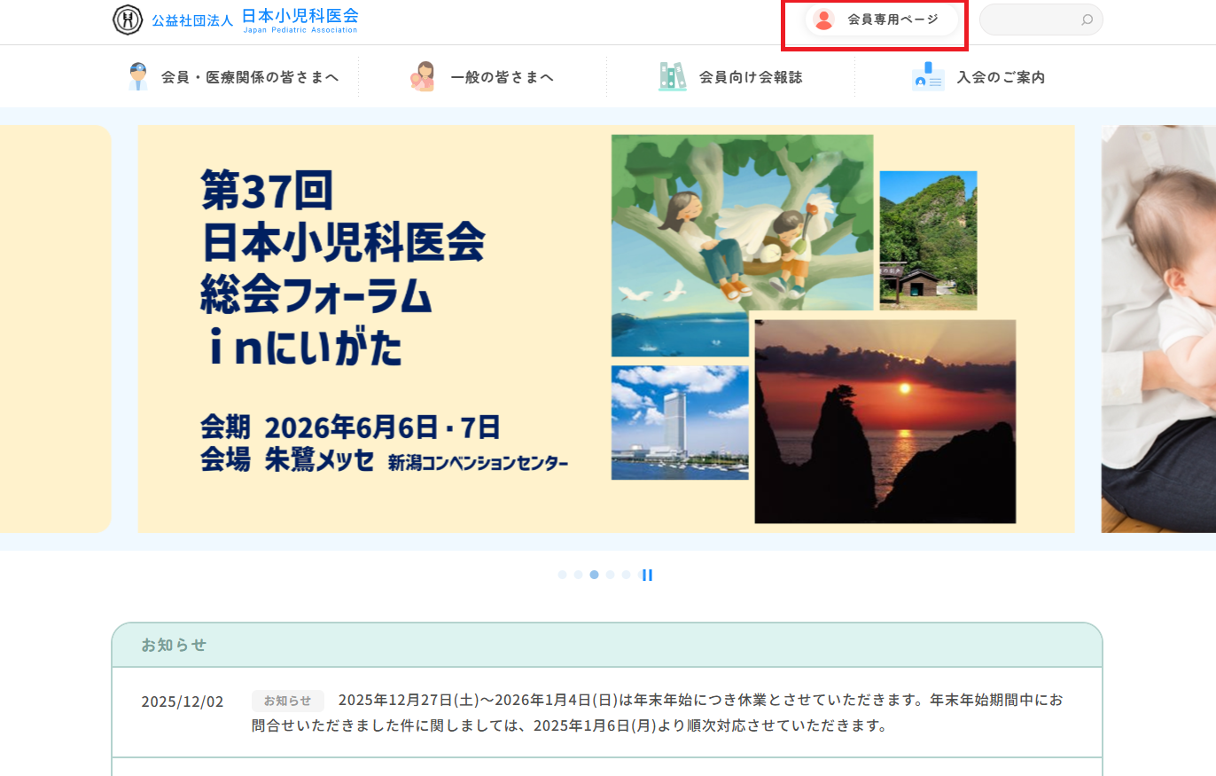 本サイトのヘッダメニュ―「会員専用ページ」から会員サイトへリンク頂けます。